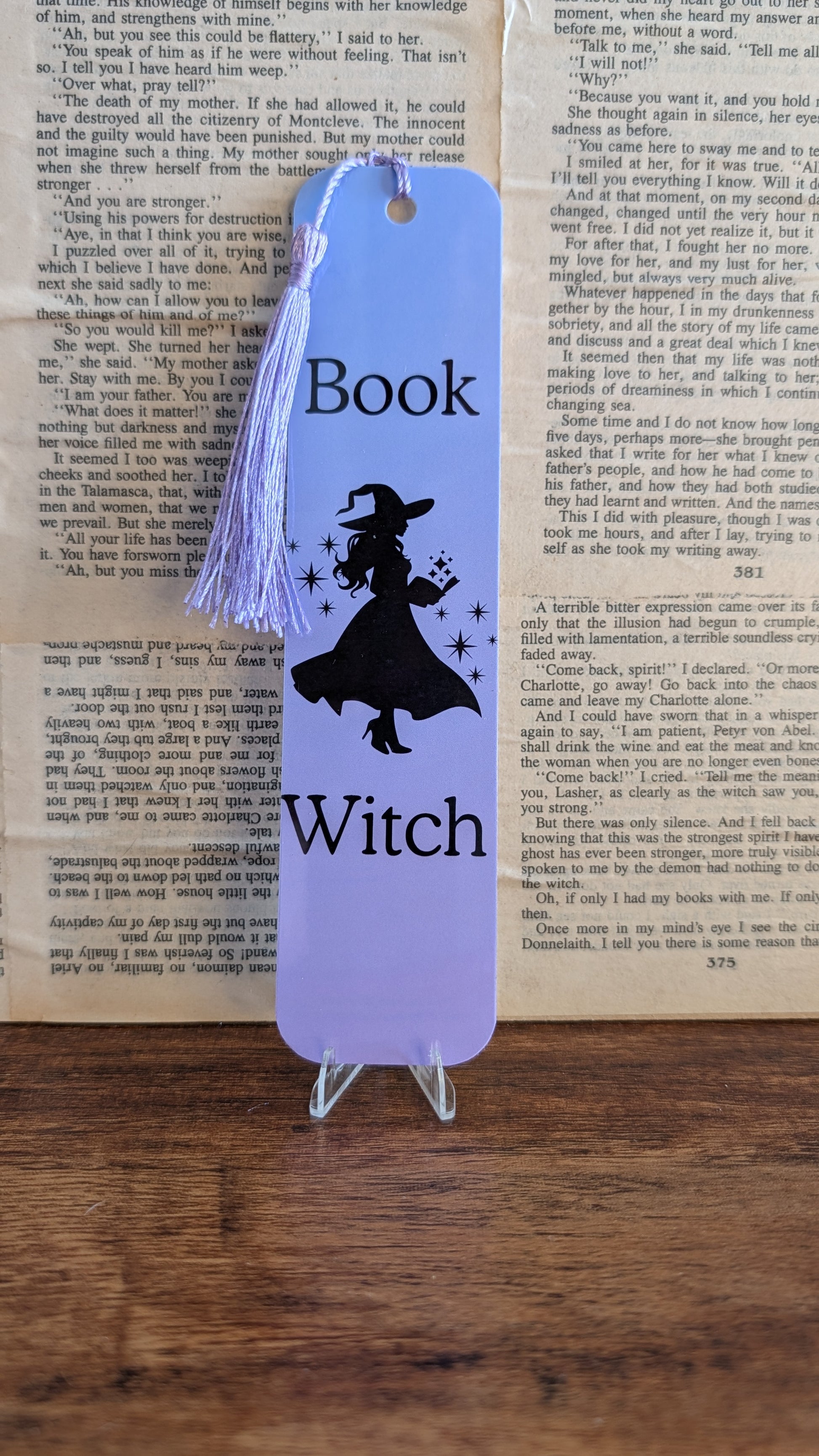 Our Book Witch Bookmark is perfect for book lovers. This bookmark has an ombre background with bookish witch on it. This bookmark comes with or without a tassel, you'll be sure to find something for the book lover on your gift list.Â