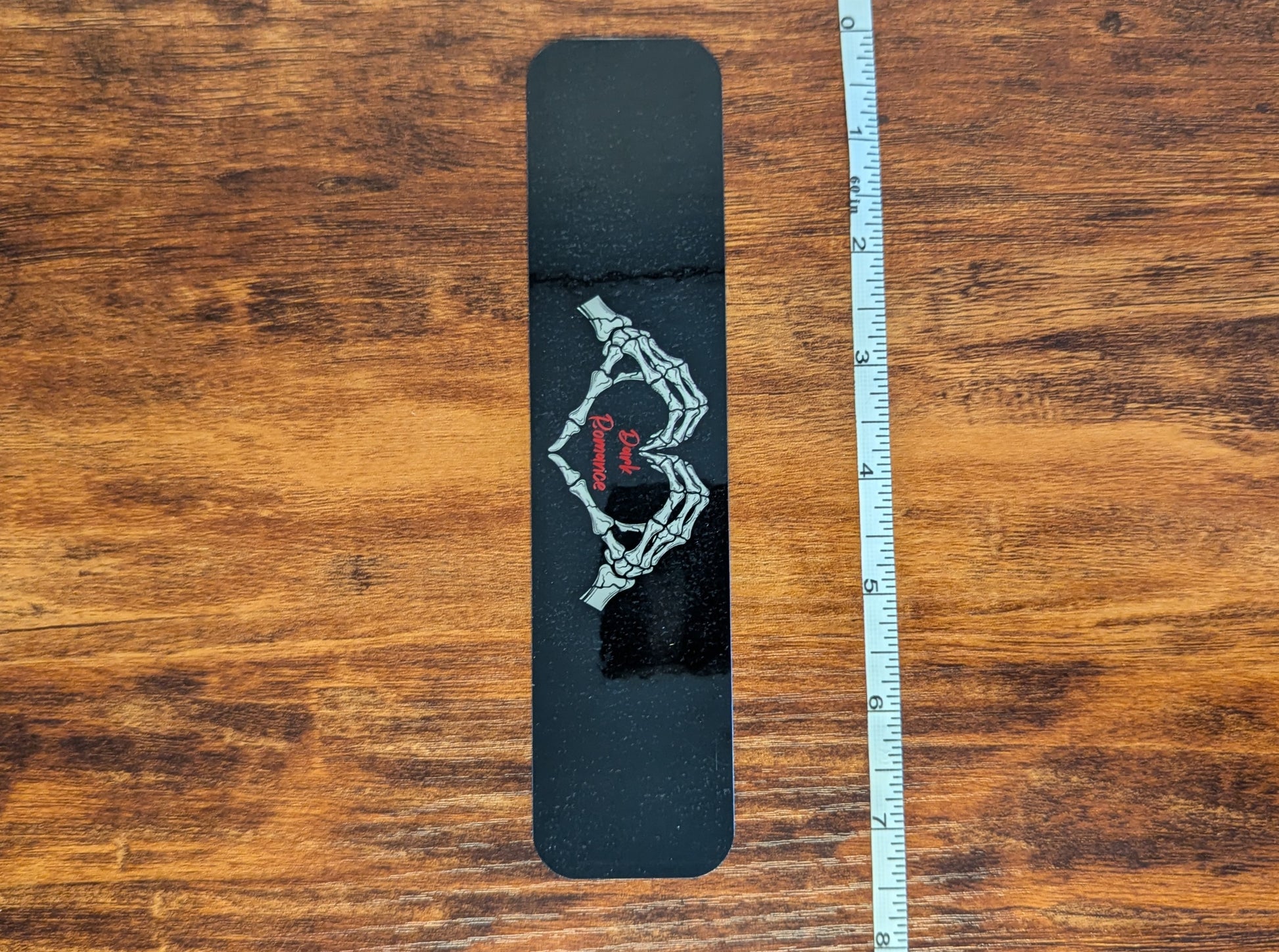 Our Dark Romance Skull Heart bookmark is perfect for dark romance lovers. The Dark Romance Skull Heart bookmark is approximately 7" x 2 3/4" with a black background and skull heart hands with red words(each bookmark is hand cut by me so sizes are not exact). All bookmarks are printed on heavy duty card stock and laminated to make them durable and long lasting.