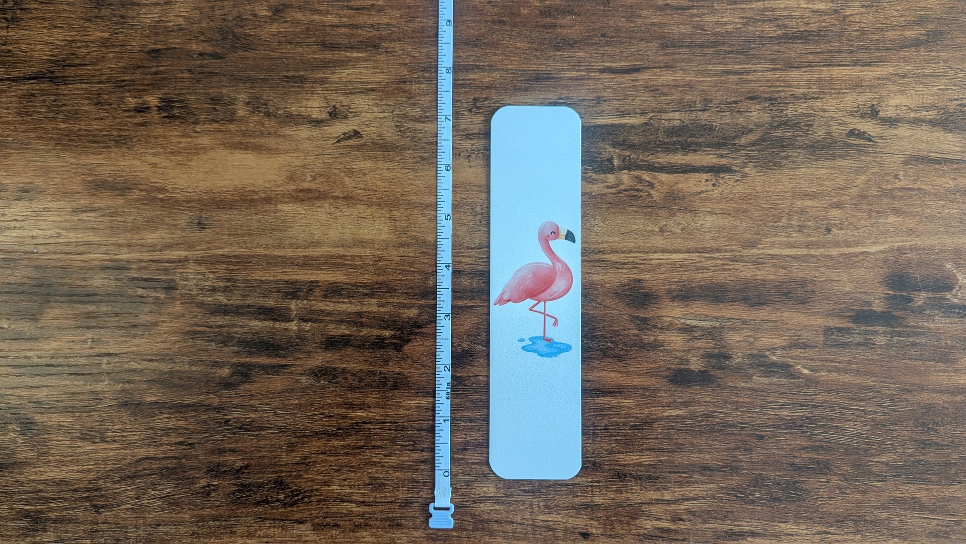 Our Pink Flamingo bookmark is perfect for your beach read. The Pink Flamingo bookmark is approximately 7" x 2 3/4" with a pink watercolor flamingo in water (each bookmark is hand cut by me so sizes are not exact). All bookmarks are printed on heavy duty card stock and laminated to make them durable and beach proof.